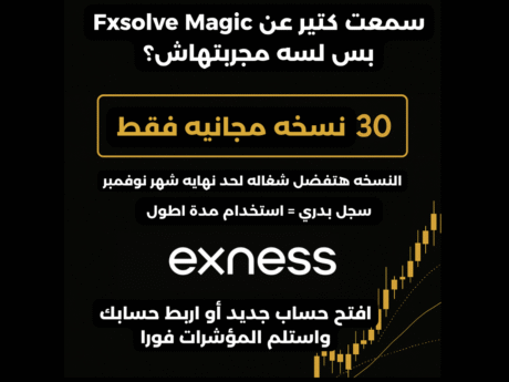 لو سمعت عن مؤشرات FxSolve Magic V4 وشايف نتائجها وانتشارها بين المتداولين، دلوقتي وقت التجربة الحقيقية…فرصة محدودة إنك تشوف قوتها بنفسك خصوصًا على الذهب 🥇🔥 🎁 تفاصيل العرض • 30 نسخة فقط• مجانًا بالكامل• تعمل حتى نهاية شهر نوفمبر• بدون أي التزامات• سجل بدري = تستخدمها مدة أطول ✅ 🎯 ليه الناس بتجرب المؤشرات؟ لإنها: ✔️ بتحدد الاتجاه بدقة✔️ بتكشف مناطق السيولة✔️ بتصفي الإشارات✔️ بتقوي …