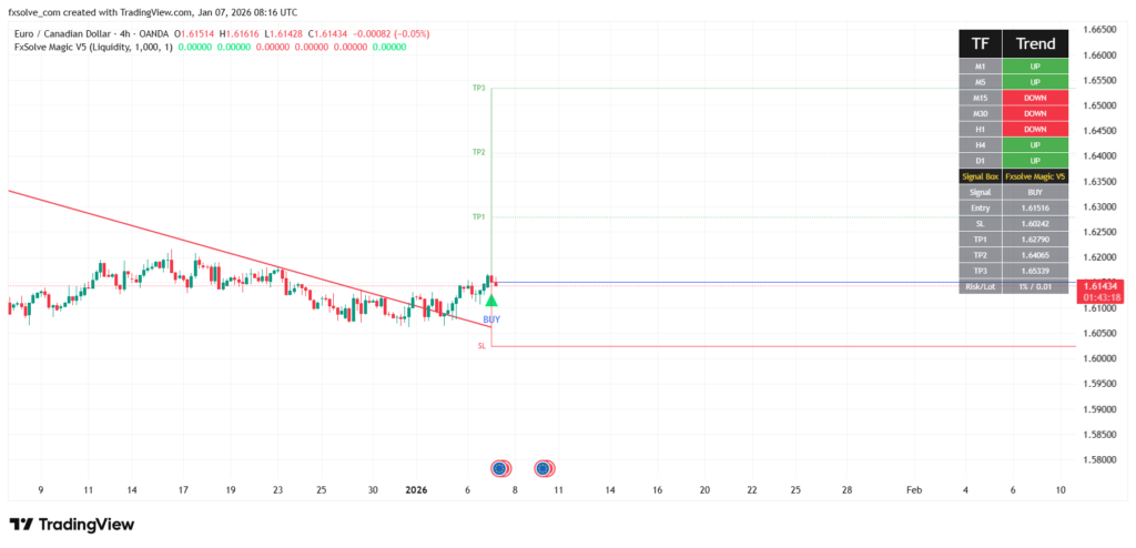 تحليل صفقة EURCAD باستخدام FxSolve Magic V5 – استراتيجية السيولة | دخول حقيقي مع الاتجاه العام