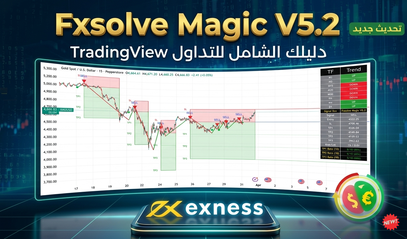 🔔 تحديث هام – مارس 2026 تمت ترقية المنظومة بالكامل إلى FxSolve Magic V5.2. هذا التحديث هو الأضخم في تاريخنا، حيث تم إعادة بناء خوارزميات تحديد الأهداف ودمج استراتيجيات مخصصة لكل أصل مالي لضمان أعلى معدلات النجاح.