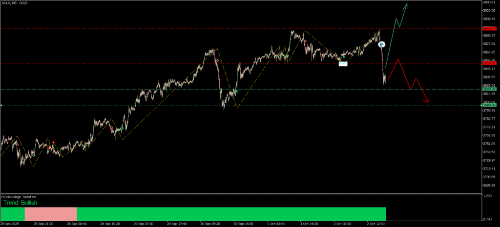 الذهب يفشل في الصعود ويكسر دعم 3853 – سيناريوهات الهبوط والتصحيح أسفل 3896