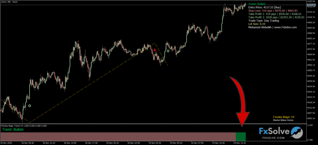 ومؤشر FxSolve Magic Trend V4 أكد رسميًا أن الترند العام رجع صاعد بعد فترة من الضعف.