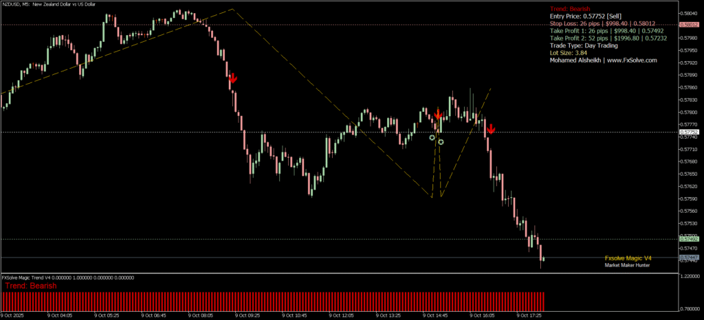 فرصة اليوم على زوج NZD/USD – فريم 5 دقائق | إشارة بيع قوية مع الاتجاه العام 👌🔥
