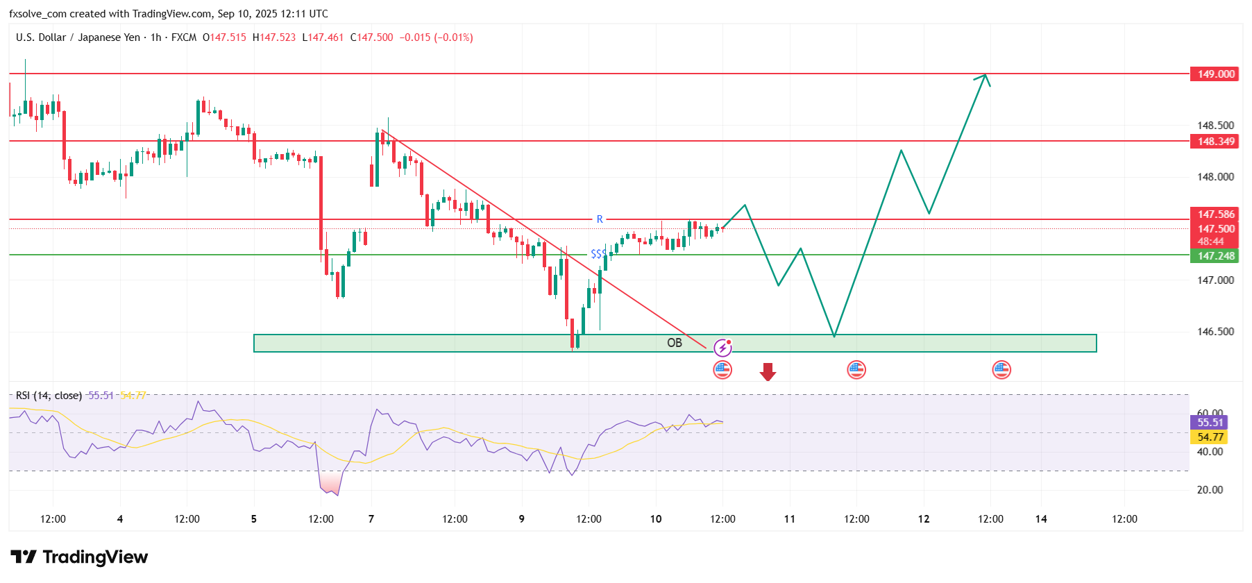 📊 تحليل فني لزوج الدولار ين USD/JPY – إشارات شراء من مناطق الطلب – 10 سبتمبر 2025